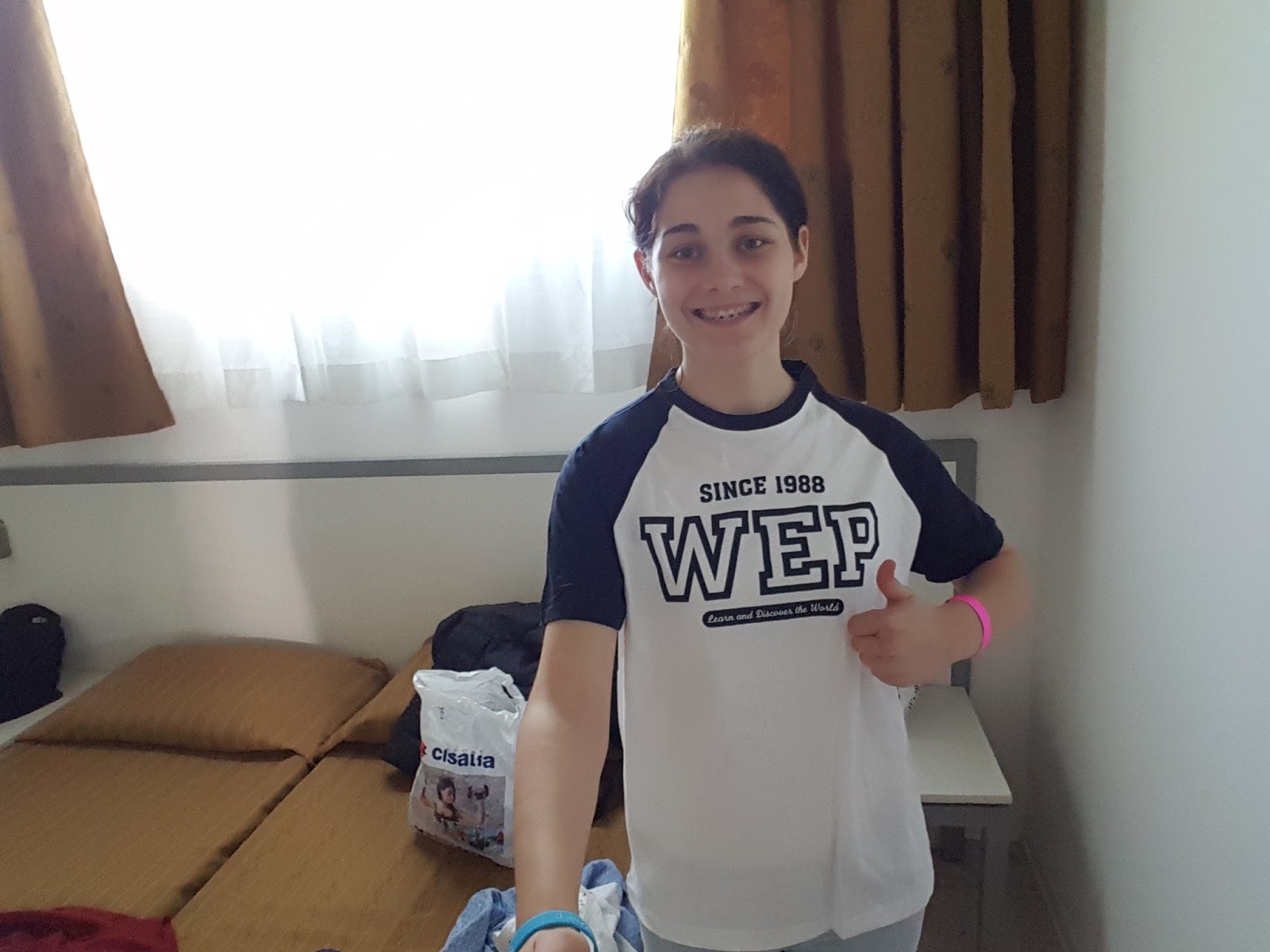 Poverina, la aspetta un bel jet lag!. Adesso no so perchè lì si studi Tedesco, ma lei lo ha scelto per il mio stesso motivo: sapere 3 lingue. La sua scuola è enorme, e hanno tutti la divisa, proprio come quella nei fumetti giapponesi! Vuole iniziare tennis, e mi sa che noi ragazze saremo un bel trio!